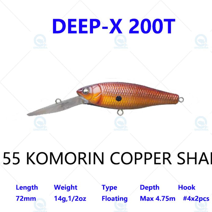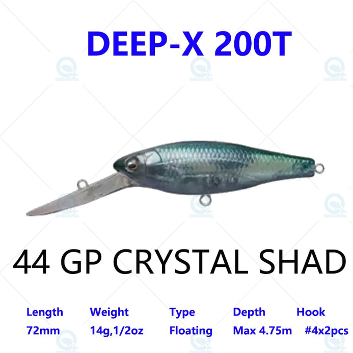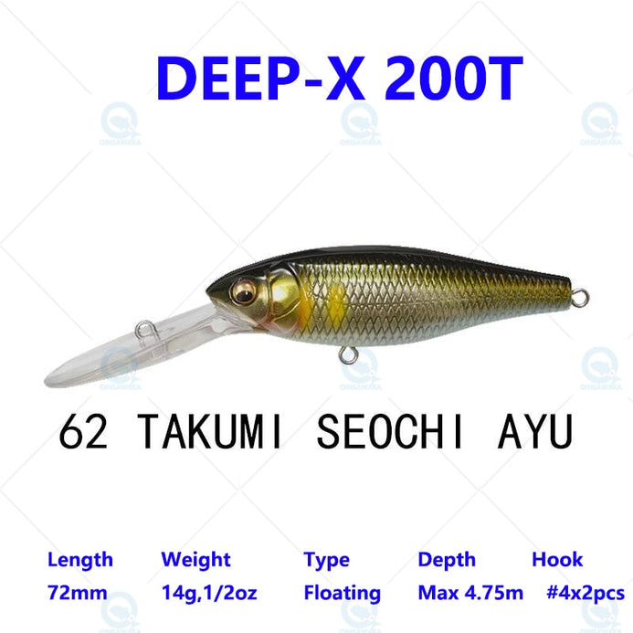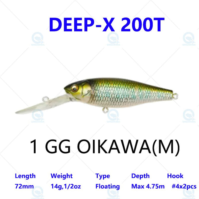The Megabass Deep-X 200T is a minnow shaped, 72mm, 14.2grams, floating, crankbait fishing lure that is designed for deep diving action.