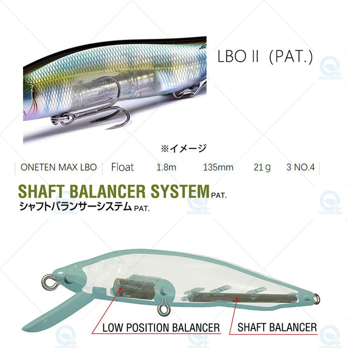 The ONETEN MAX LBO is a large, highly responsive jerkbait powered by the revolutionary LBOII moving balancer system.