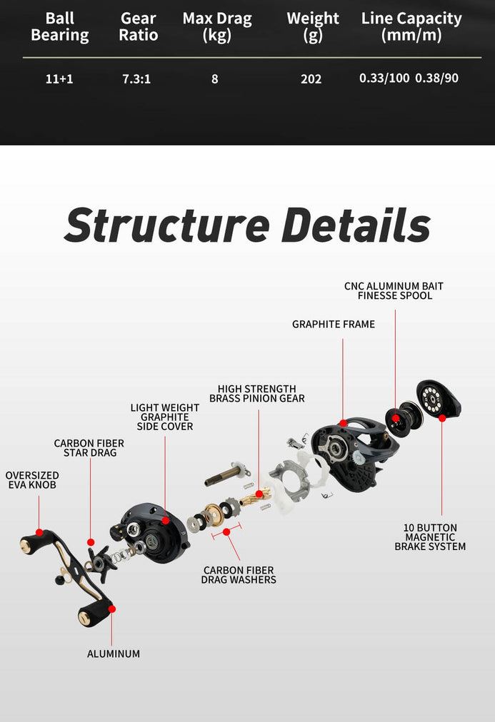 JOHNCOO CAPTAIN 11+1BB 7.3:1 18lb max drag Baitcasting Reel