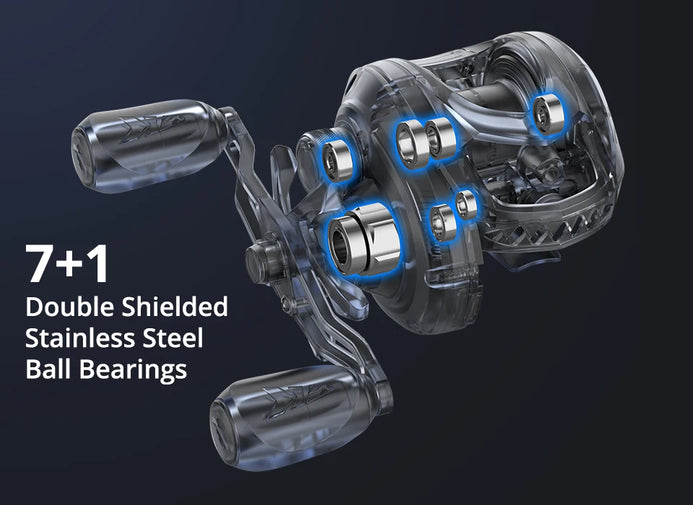 7+1 Durable Bearings: Double-shielded stainless steel bearings ensure a smooth retrieve and long-bearing life, even in tougher conditions.