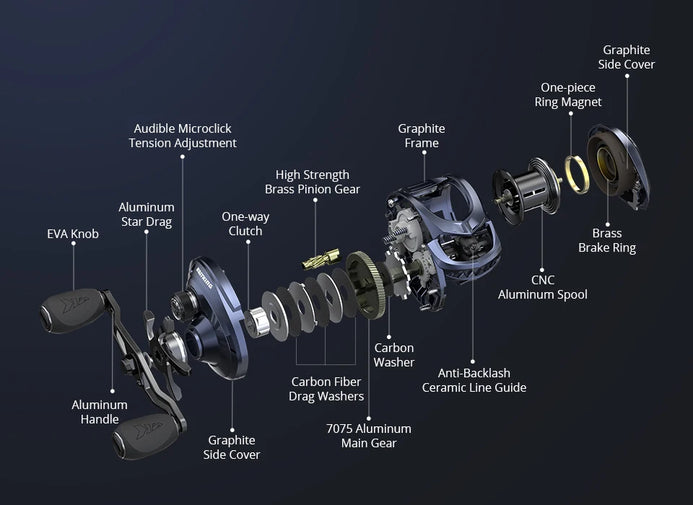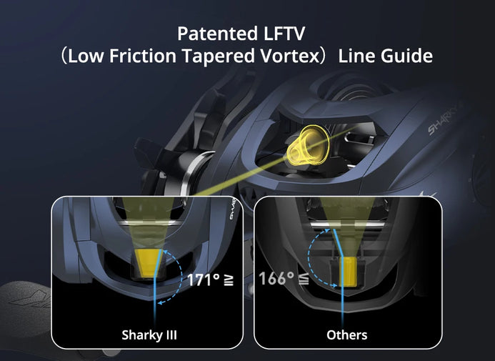 Patented LFTV Line Guide & Long-cast Spool: The low-friction line guide and shallow spool work to reduce casting friction, resulting in longer, more accurate casts and fewer backlashes — useful for tossing lures precisely at structure or cover.
