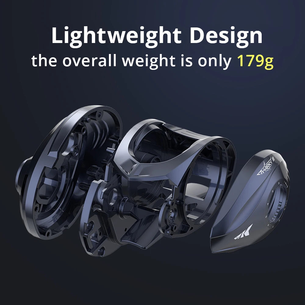 Lightweight, Durable Frame & Handle: The reel uses a reinforced frame with a CNC aluminum handle arm to keep weight down while retaining strength — helping reduce angler fatigue during extended sessions.