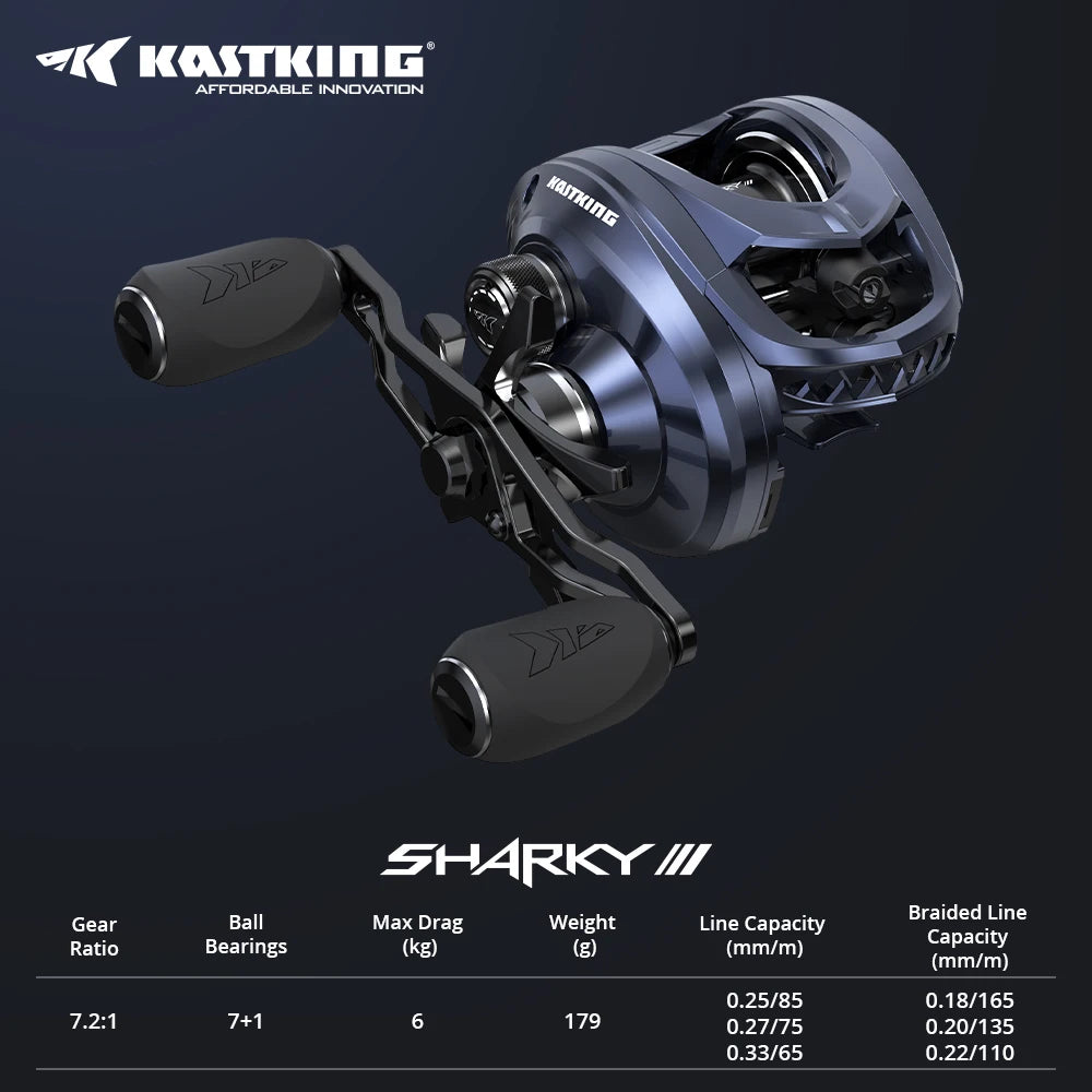 KastKing Sharky III Baitcasting Reel 6KG Max Drag 7BB+1RB 7.2:1 High Speed