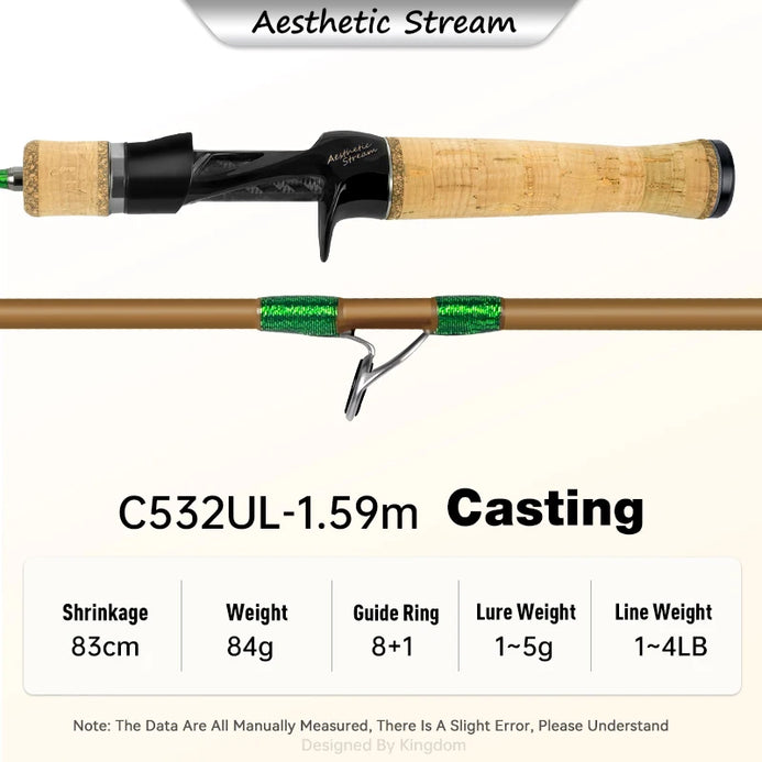 Kingdom Aesthetic Stream Spinning/Casting Rod 1.43m/1.5m/1.59m 2PC UL Power MF Action