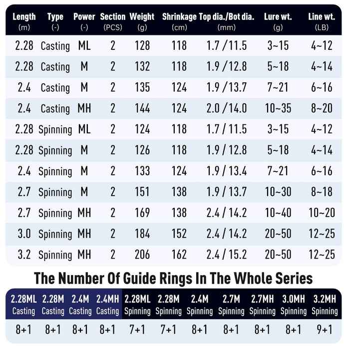 Rod Length: 2.28m 2.4m 2.7m 3.0m 3.2m