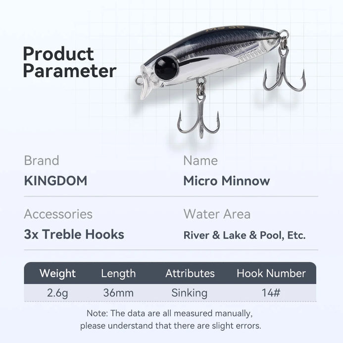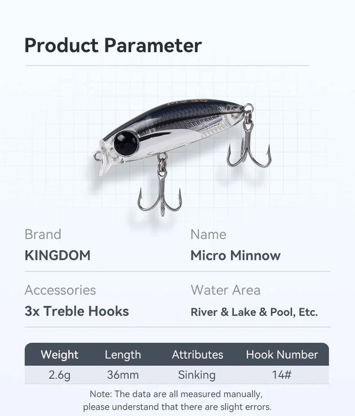 - Kingdom Micro Minnow Ultra Slow Sinking Lure 2.6g 36mm