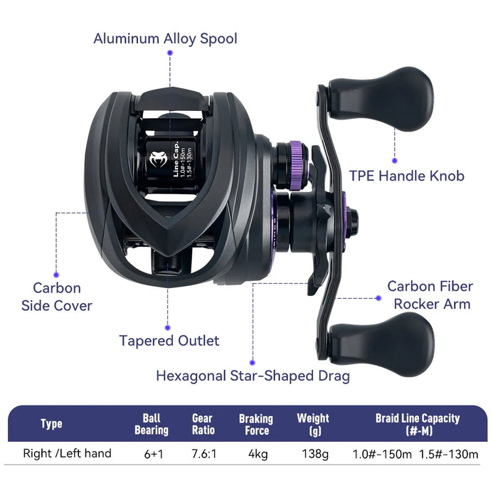 • Precision Braking System: Fine-tuned magnetic brakes offer superior casting control and reduced backlash, even with ultra-light lures.