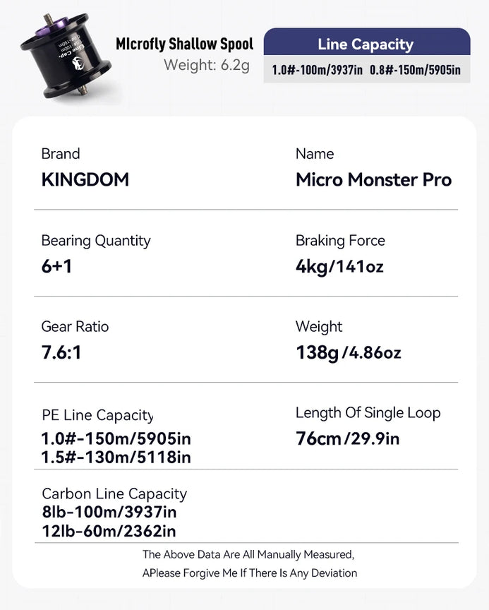 Kingdom Micro Monster Pro Baitcasting 6+1BB 138g Ultra-light 7.6:1 Ratio