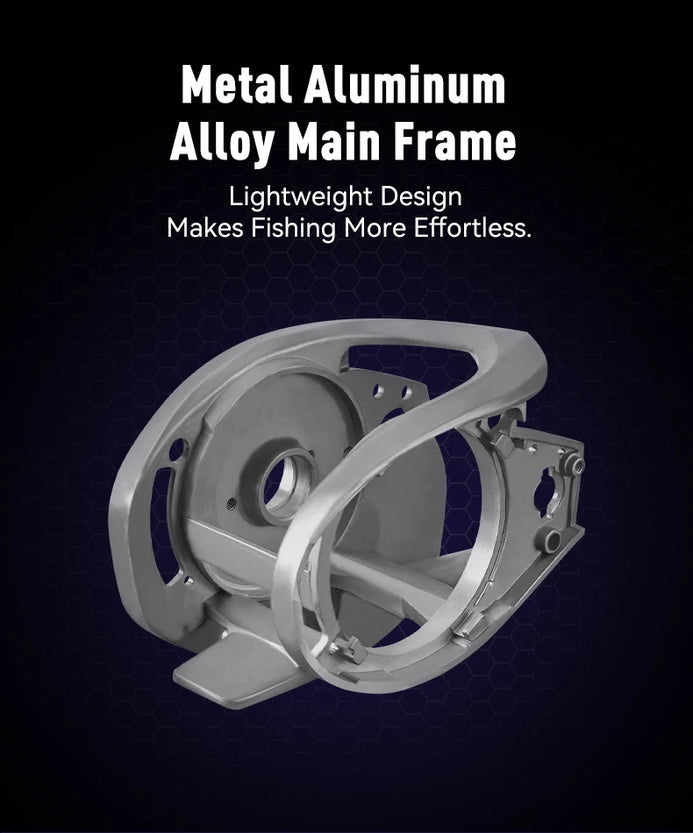 • Aluminum Spool: Lightweight yet strong, designed for low-inertia startup with light lines and small baits.