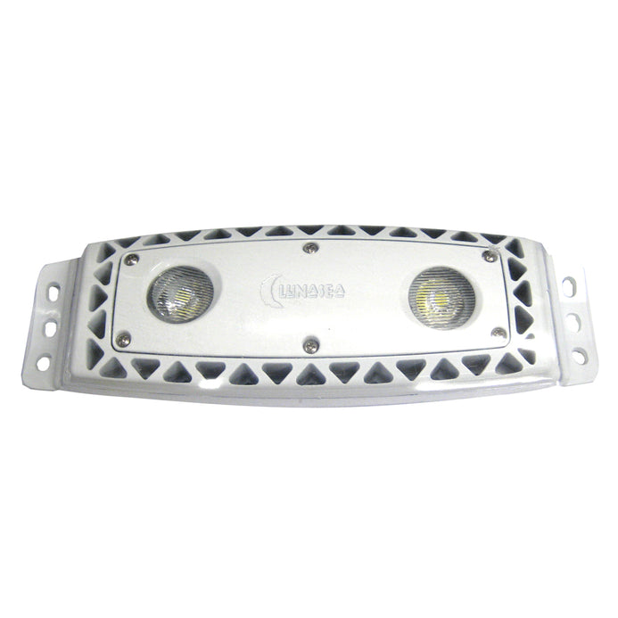 A spreader light that delivers. Designed for distance, engineered for quality. Using two of the brightest single point light source LED's married with a lens, Lunasea puts the light where you want it - On your boat deck! Most spreader lights cast a large quantity of light outside your boat while other spreaders focus their little intensity on small areas. If polarity is swapped on the power, the light dims down which is ideal for a beautiful night sipping on a cocktail. All this while only drawing 11 watts of power."