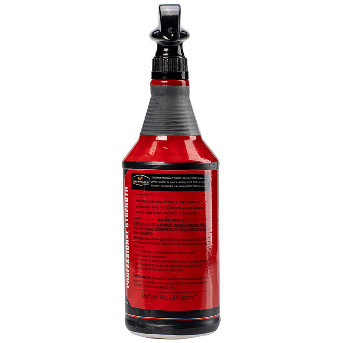 Meguiar's D143 non-Acid Wheel & Tire Cleaner is the professional's choice for fast and effective non-acid-based cleaning of OEM factory clear-coated and chrome wheels. “The Professional's Choice" Meguiar's Detailer products are the perfect solution for anyone detailing cars at home, on the side, or full-time – now available in an easily accessible Ready-to-Use format.
