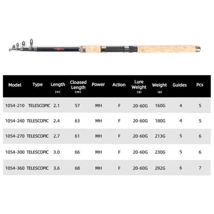 MiFiNE WHIRLY Telescopic Spinning Rod 2.1M-3.6M Lure Weight 20-60g Carbon MH