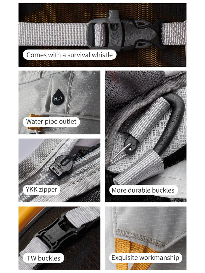 Weight: 880g Backpack Body (565g) / PP Back Panel (70g) / EVA Back Panel (105g) / Waist Belt (140g