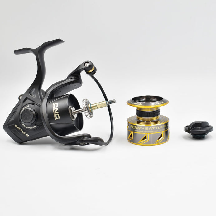 The PENN Battle III offers attractive cosmetics, durable design, and silky smooth HT-100 drag as just a few of the many reasons why so many anglers fish this reel. The Full Metal Body construction allows it to maintain precision gear alignment under severe punishment.