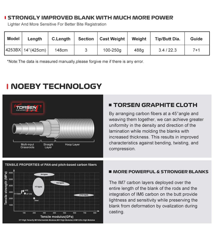 The quality of a rod's "sensitivity" could only be determined after actually making the rod,the Noeby strives to provide the ideal blanks for the required practical fishing performance with its more tenacious blanks lighter handling, and higher sensitivity characteristics