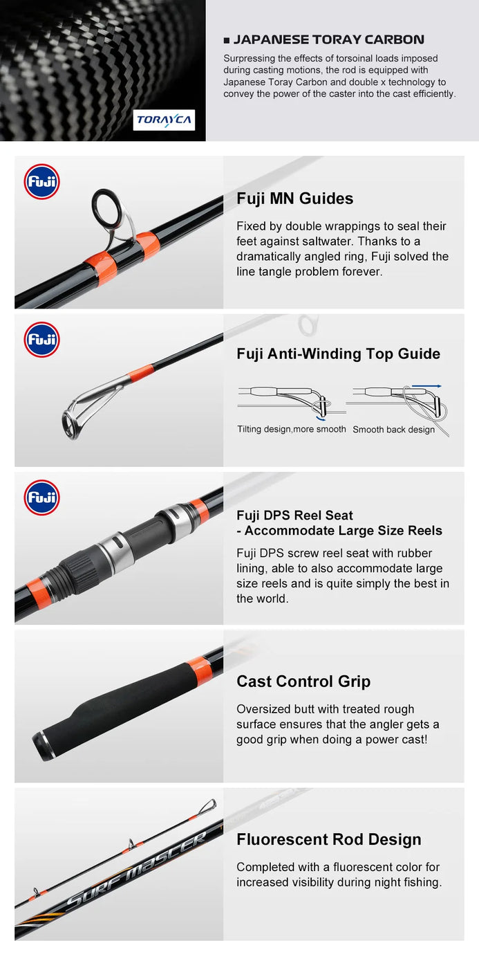 Introducing the Noeby Surf Carbon Casting Rod, your companion for mastering the deep waters. With its 4.25m (14FT) length and 3 piece carbon construction, this rod offers unparalleled accuracy and power when casting. Crafted with premium carbon fiber, it's the ultimate choice for any angler who seeks to conquer the surf.