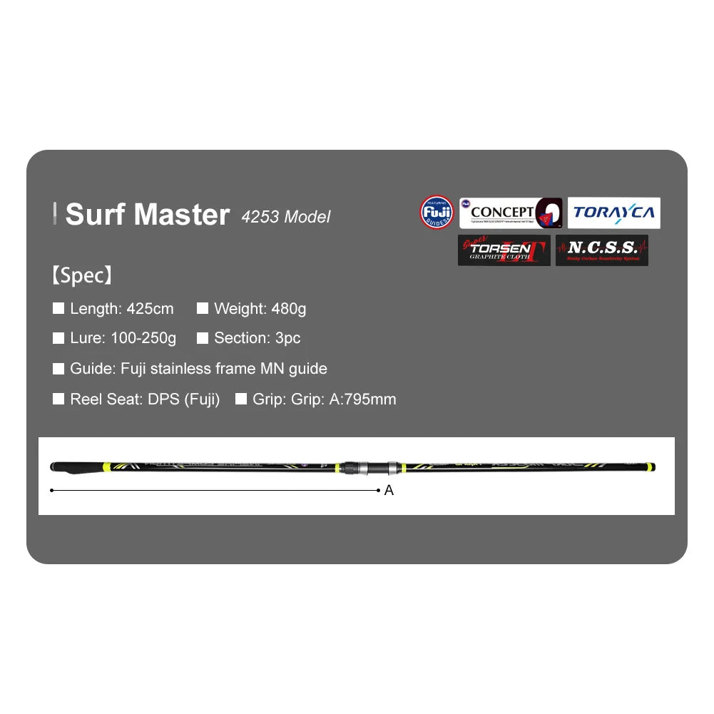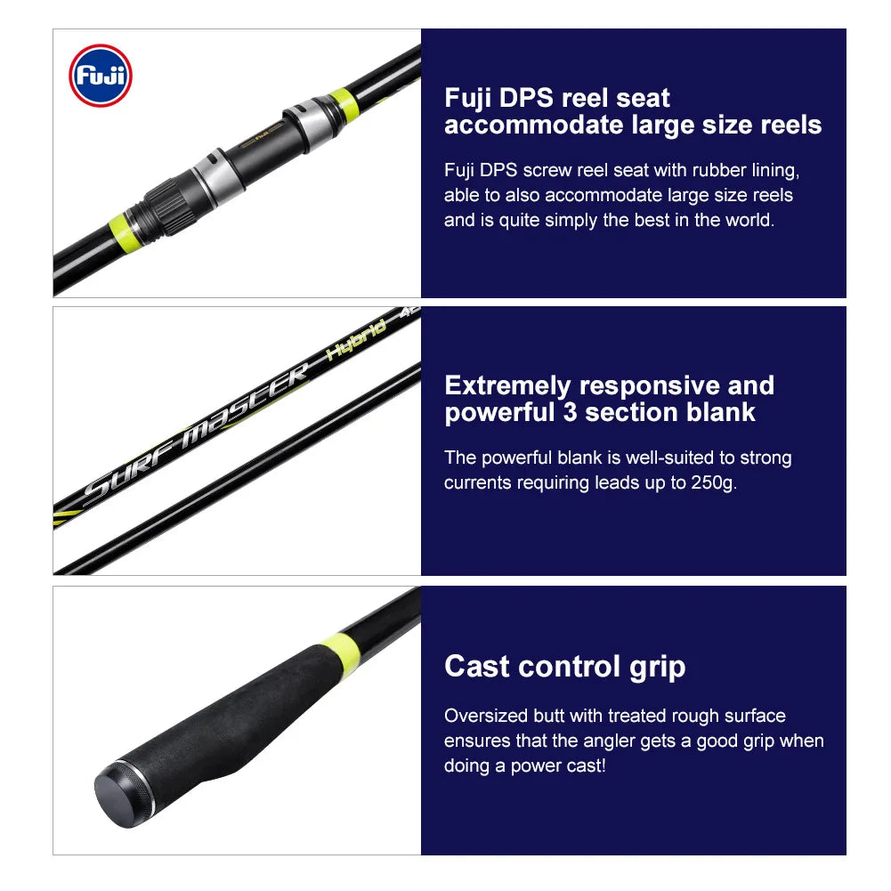 Noeby Hybrid Surf Master Casting Fishing Rod 4.25m 3PC Carbon Tip Fuji Guide DPS Reel Seat
