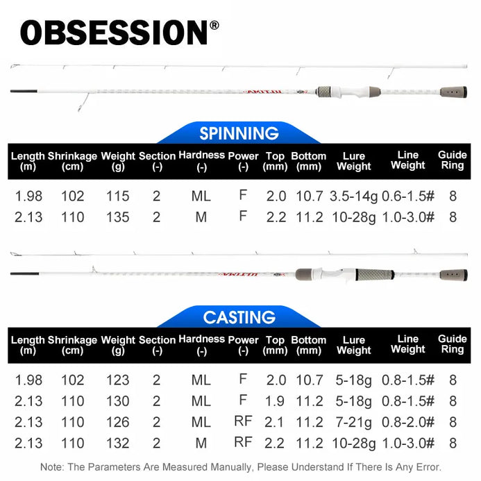 OBSESSION Ultima Carbon Spinning/Casting Rod 1.98m/2.13m ML M 2PC