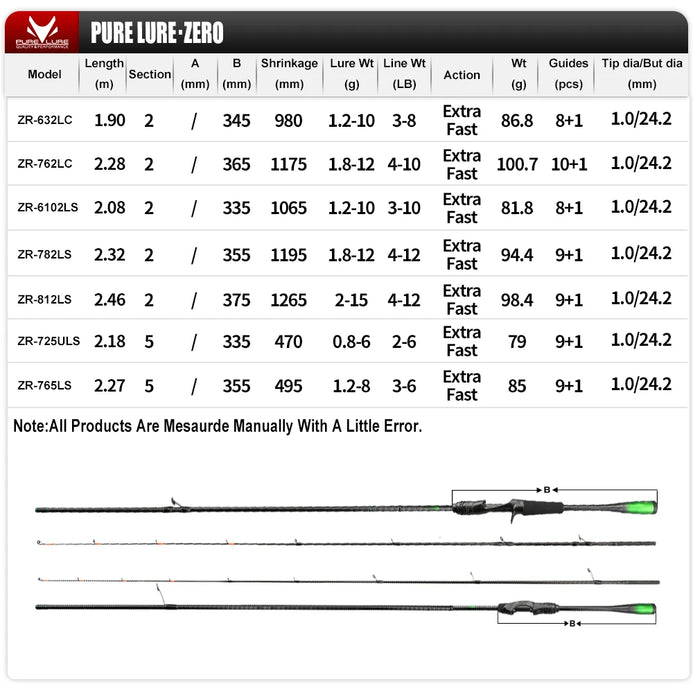 PureLure ZERO Carbon BFS Casting/Spinning Trout Rod UL 2PC 1.9m-2.46m