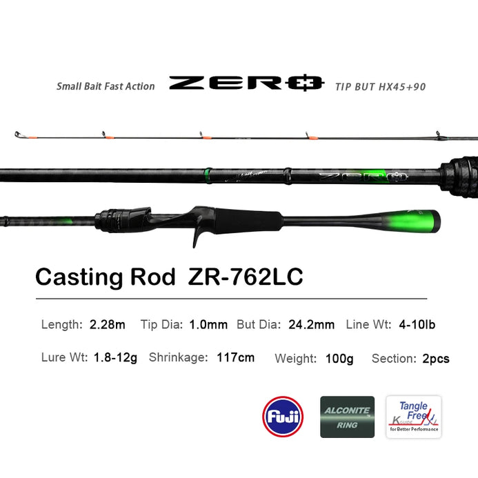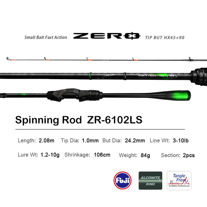 The ZERO series of lightweight shore-casting root fishing rods takes a incorporates new design concepts and root fishing concept and applies it during the production process. All models feature a solid reinforced tip setup, which allows for a more subtle and flexible mimicry effect on rigged baits. In order to ensure undefined high-performance and light weight, all rods are made of Japanese Toray carbon cloth. Fuji ALCONITE series guides are also fitted.