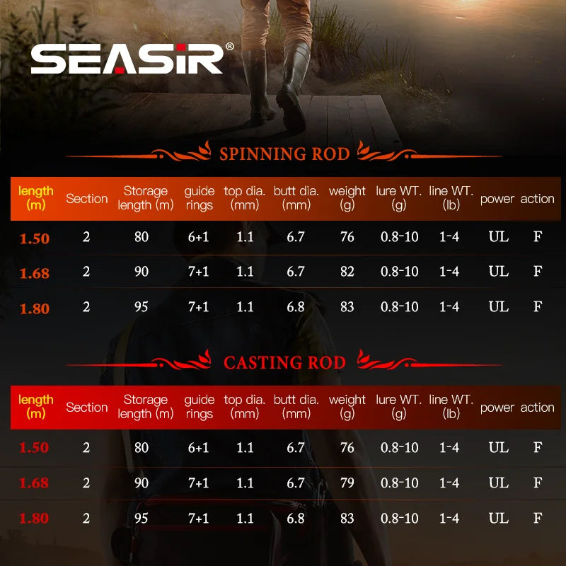Seasir Black Arrow BFS Casting/Spinning Rod 1.5-1.8m Lure Weight 0.8-10g UL 2PC