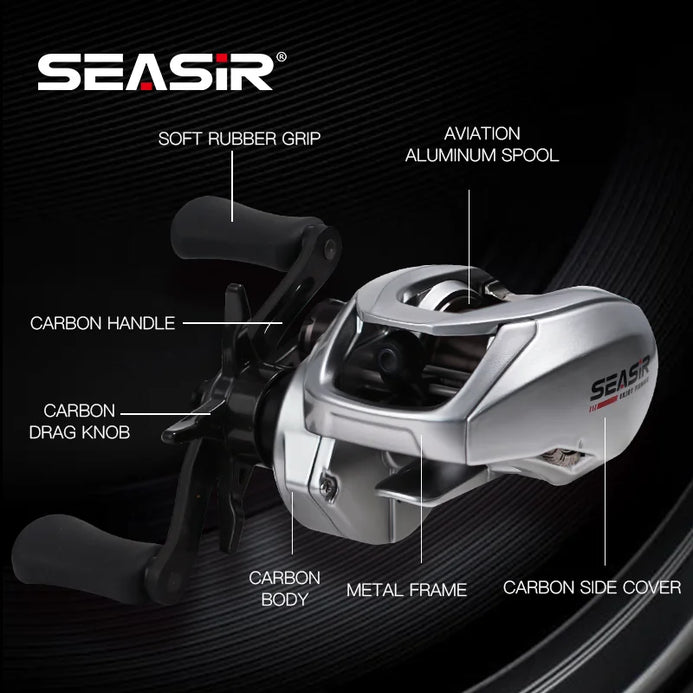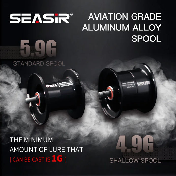 The Seasir M1 Ultralight BFS Baitcasting Reel is a high-performance fishing reel. With 10+1 stainless ball bearings and a gear ratio of 7.6:1, it offers smooth and efficient reeling. Weighing only 135g, it is ultra lightweight, easy to handle and perfect for your next BFS adventure! Comes with 2 spools for added versatility.