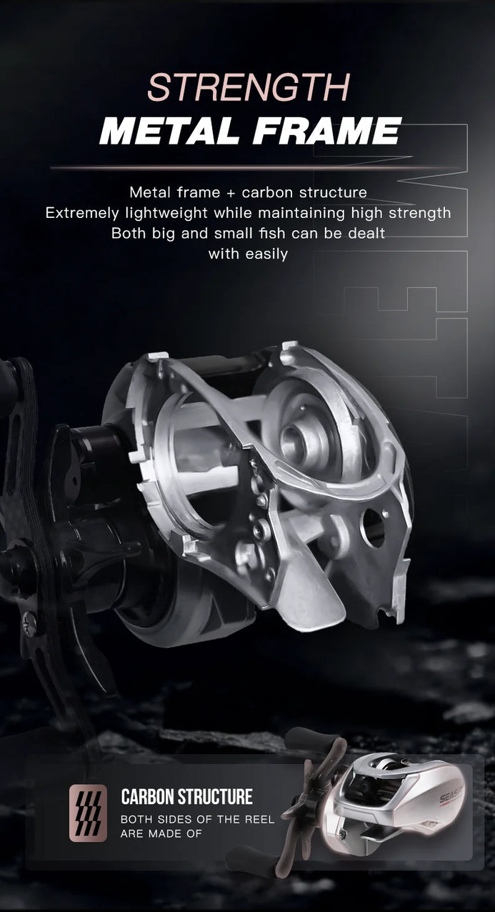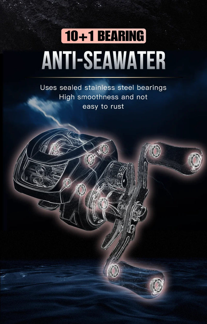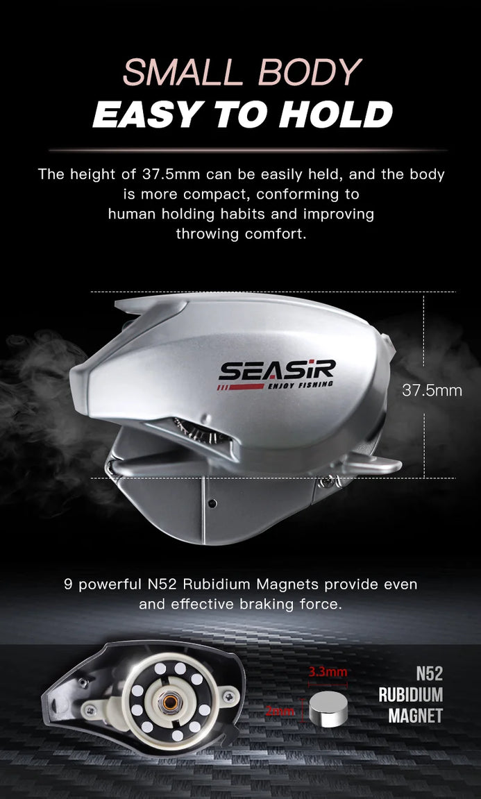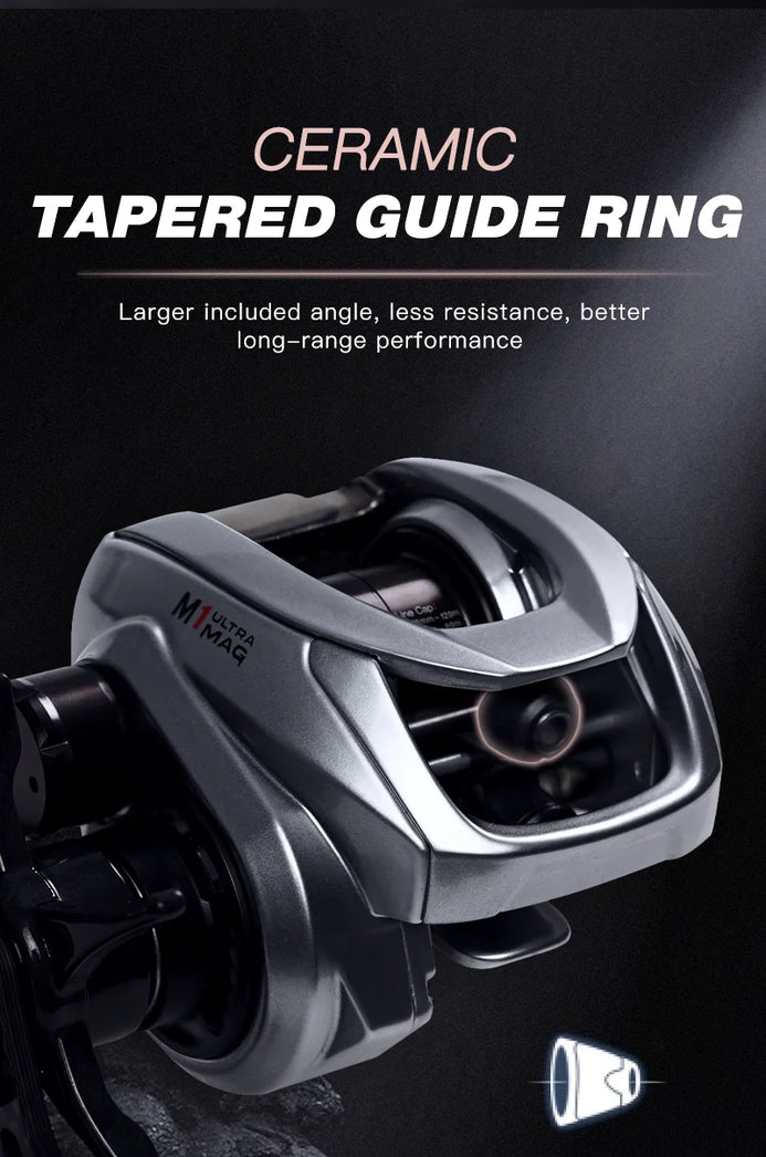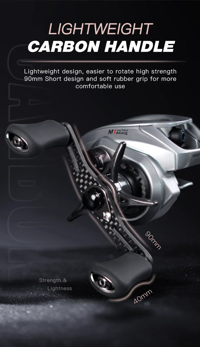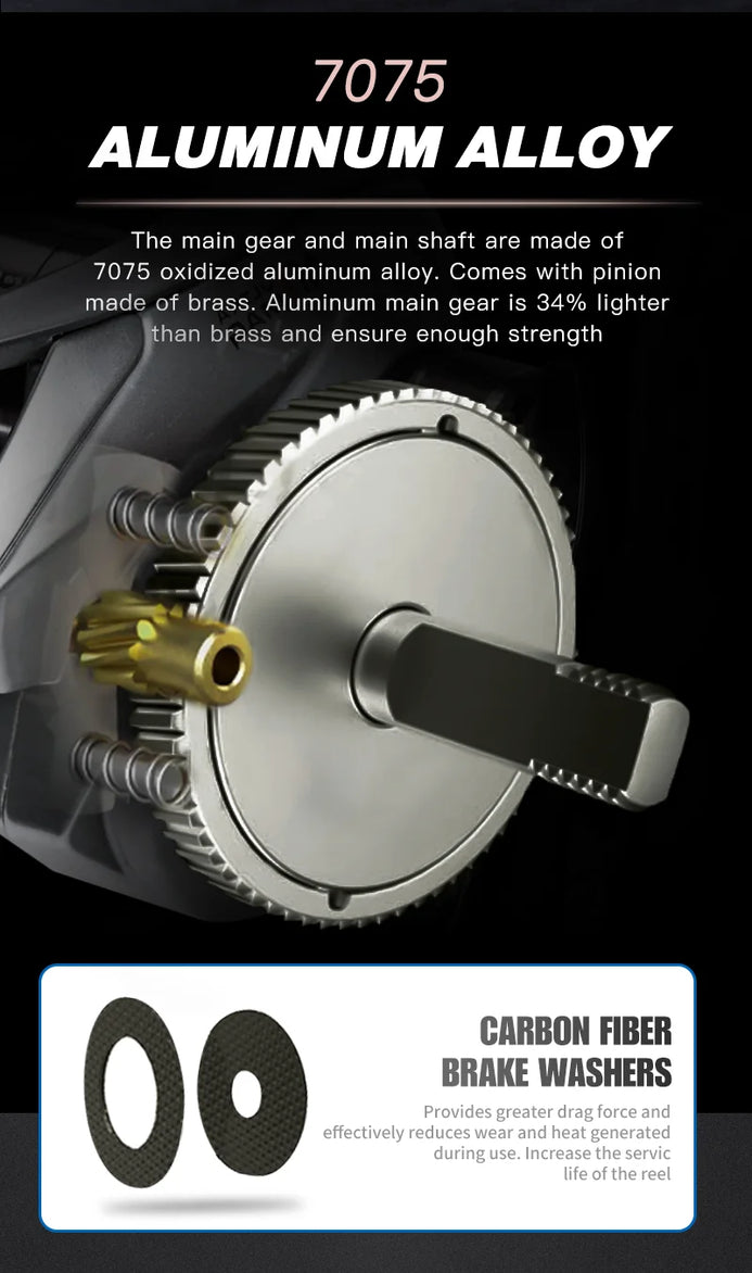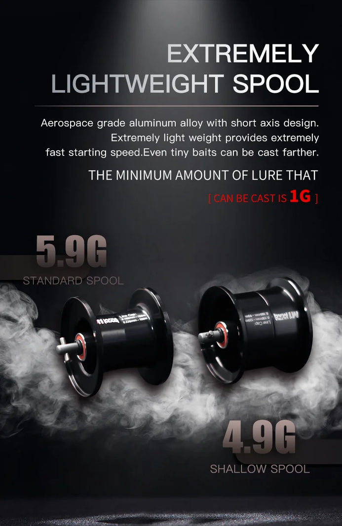 Aerospace Grade Aluminum Alloy With Short Shaft Design.Fast Starting SpeedEven Tiny Baits Can Be Cast Farther.