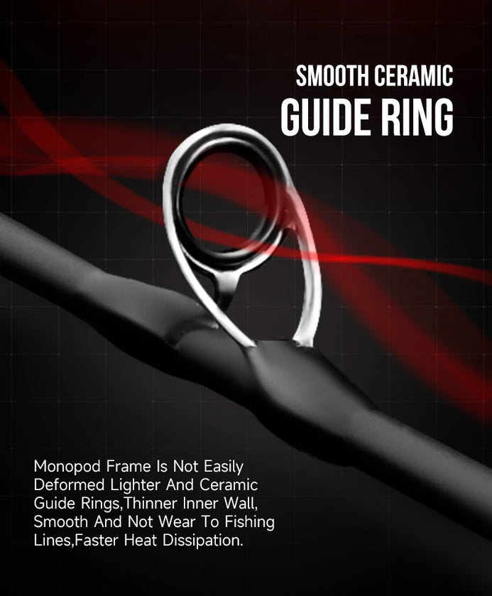 MonopodFrame Is Not Easily DeformedLighter AndCeramic Guide Rings,Thinner Inner Wall,Smooth And Not Wear To Fishing Lines,Faster Heat Dissipation,The Smooth, Durable Ceramic Guides Are a Testament To The Rod's Commitment To Longevity And Performance.