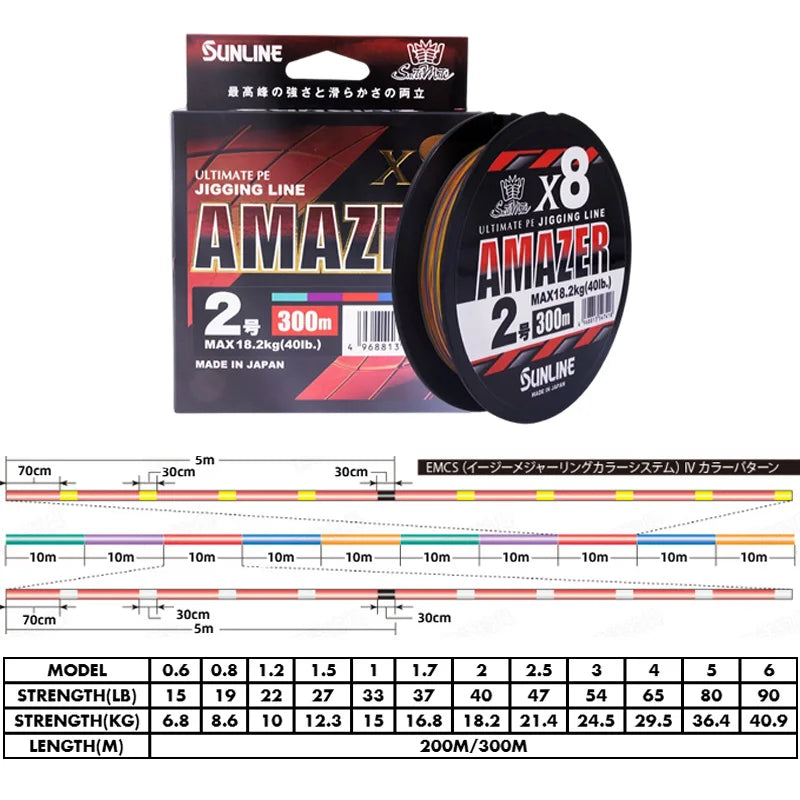 - Sunline AMAZER ULTIMATE X8 PE Jigging Braid Line 200M/300M 22LB-90LB
