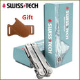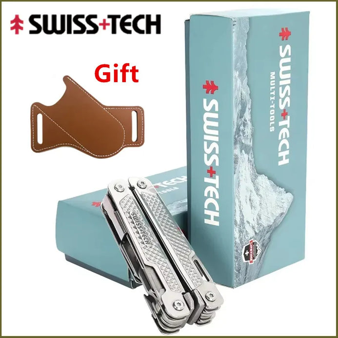 Wire stripper, Bolt gripper, Wood/metal file. Knife, Large slotted screwdriver, awl, bottle opener, flat, long nose pliers, wire cutter, scissors, key chain, can opener, phillips screwdriver