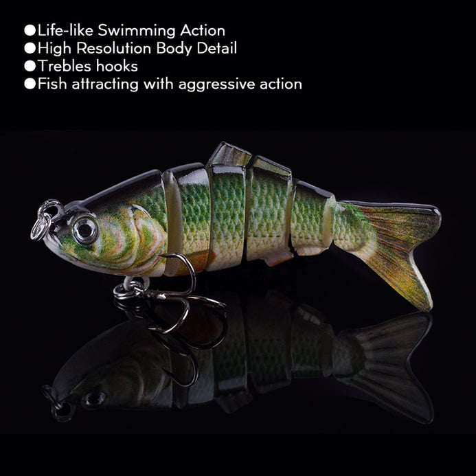 This multi jointed hard bait is one of the best accessories in your tackle box. It has lifelike appearance and can create life-like swimming actions in water to provoke predator to bite. If you are a fishing lover, take this fishing lure and it will increase your catches and bring you more fun.