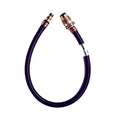 Use to connect wall-mount regulators to LPG cylinders (inside valve – left-hand thread). Fully assembled and leak tested with solid brass: male POL cylinder fitting, 1/4” male inverted flare, and high-pressure, LPG hose, UL Listed assembly. 20” Standard Length.