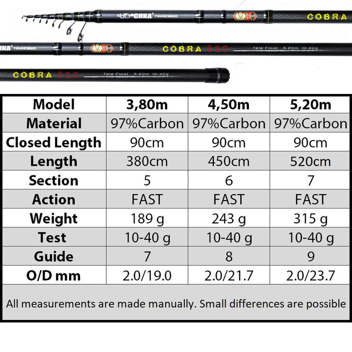 UDOCHKA Cobra Telescopic Spinning Carbon Rod FAST 3.8m 5.2m