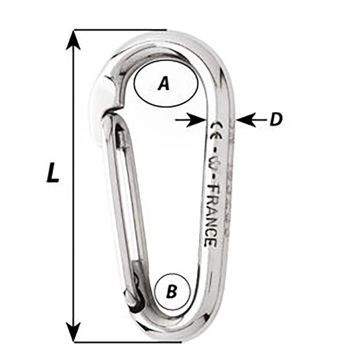 Wichard Symmetric Carbine Hook Without Eye - Length 80mm - 5/16"